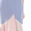Sleeveless mermaid hem cheongsam featuring asymmetrical colour blocked hem detail