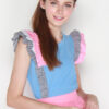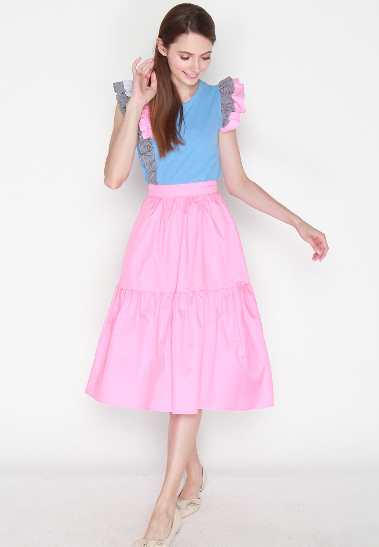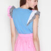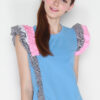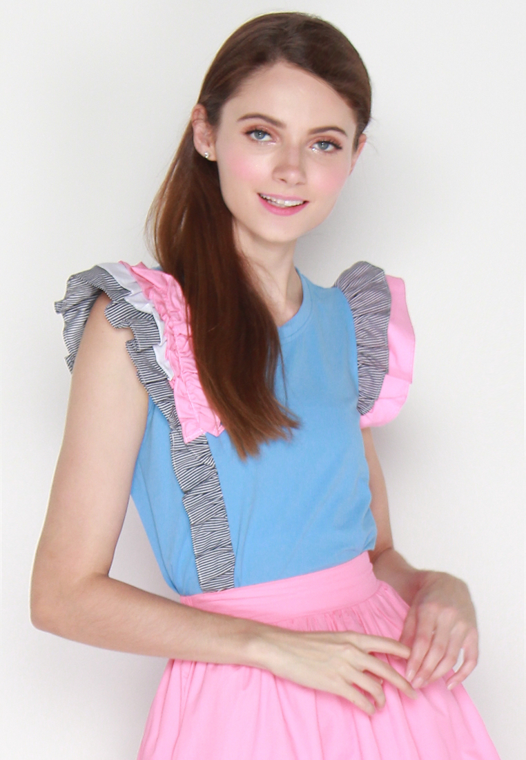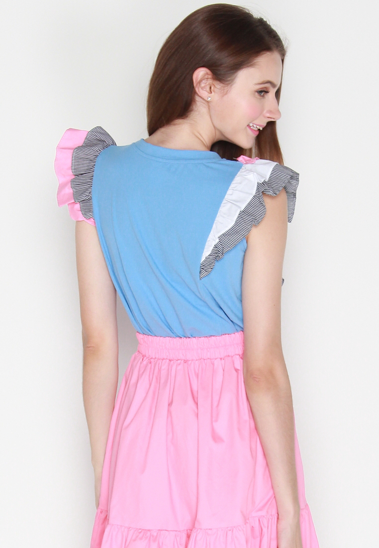 Cotton tee featuring asymmetrically frilled contrast sleeves detail