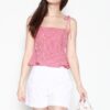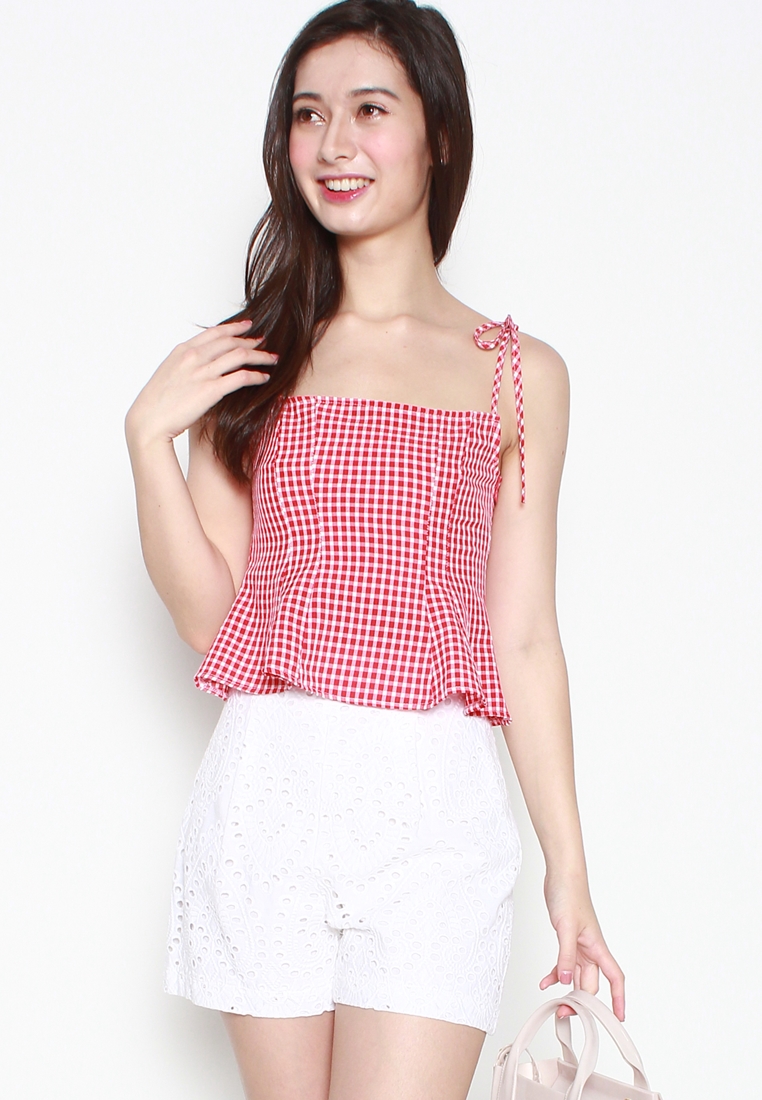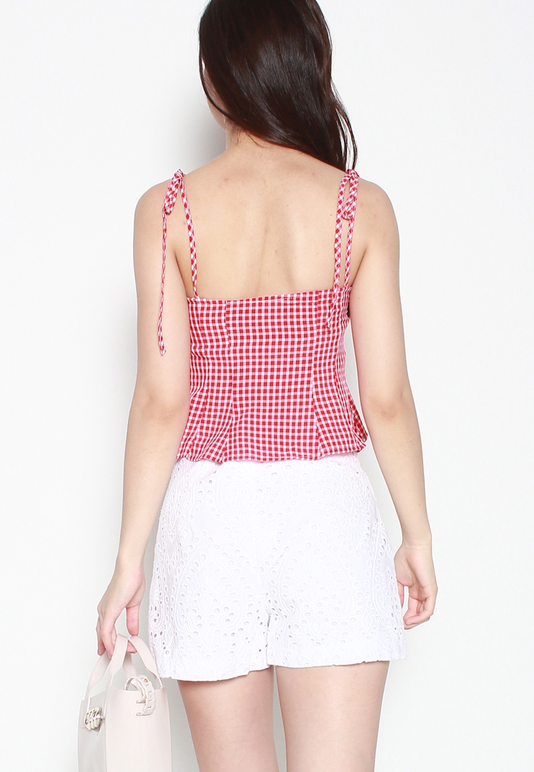 Classic flare cut cotton eyelet embroidery shorts