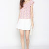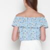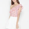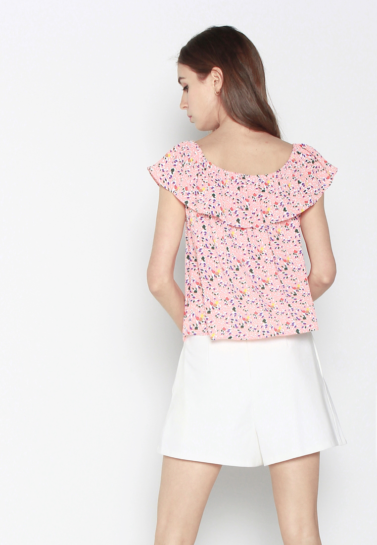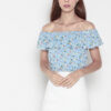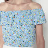 Abstract floral printed top featuring two-way elasticized off-shoulder / scoop neckline